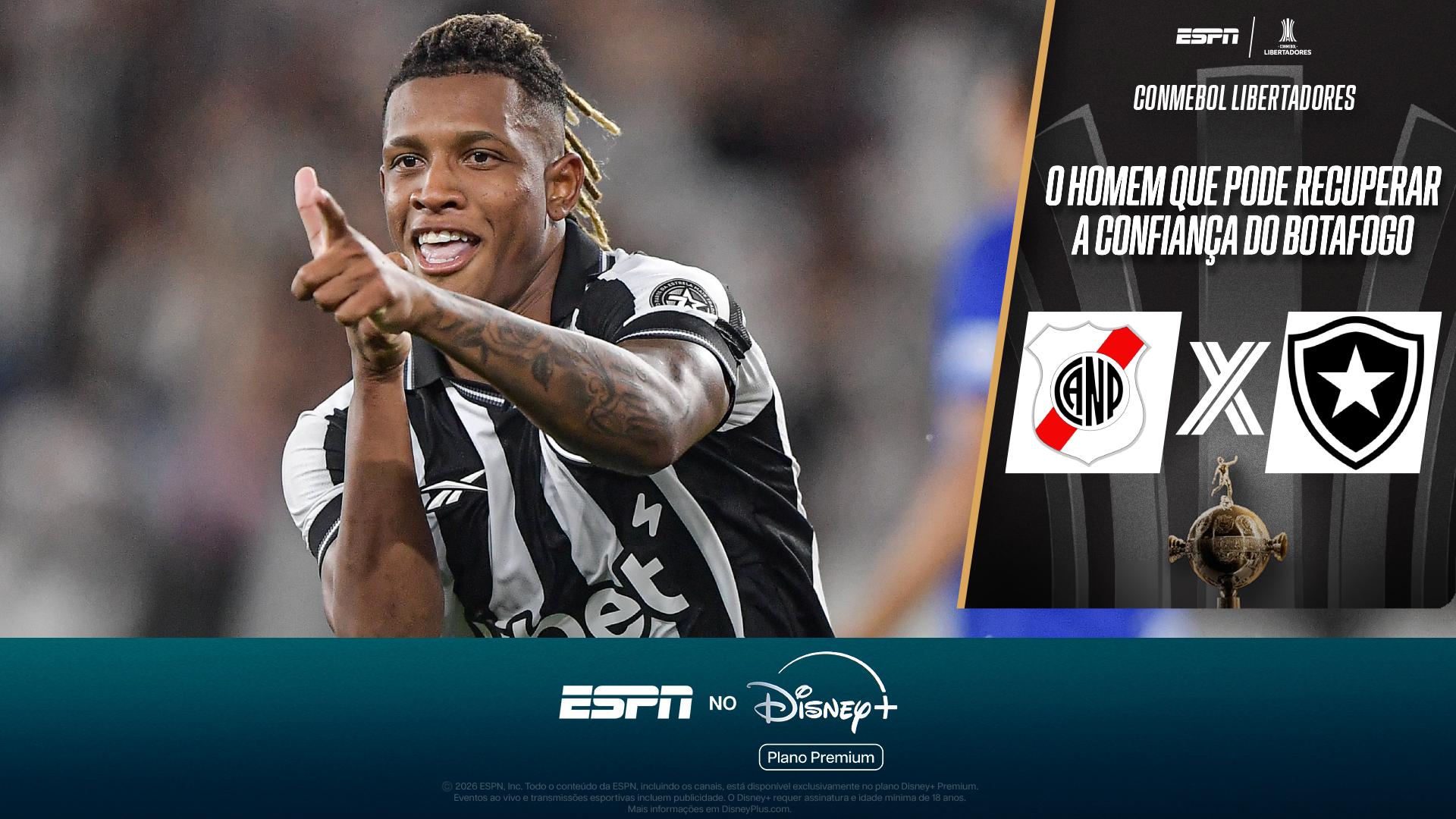 A ESPN e o Disney+ Premium exibem nesta quarta-feira (18) a estreia do Botafogo na CONMEBOL Libertadores 2026. A equipe carioca entra em campo às 21h30 para enfrentar o Nacional.