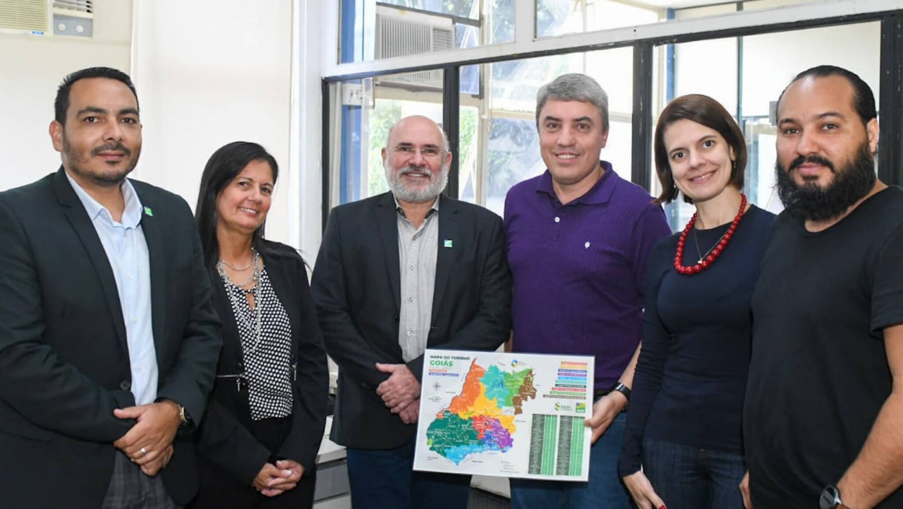 A expedição do Caminho de Cora foi o tema da reunião que trouxe até a ABC, na manhã desta terça-feira, 11, a equipe da Goiás Turismo formada pelo gerente de Estruturação de Destinos, Luciano Guimarães; o gerente de Marketing e Promoção, Rubens Ananias (Artero); e a assessora de comunicação Karine Pinheiro. Eles foram recebidos pelo presidente da Agência, José Roberto Leão; pelo diretor de Telerradiodifusão, Euler Barbosa; e pela ouvidora Darlene Bastos.