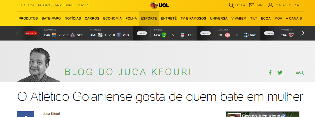 Em seu comentário veiculado na Rádio CBN São Paulo, no portal CBN e também no “Blog do Juca” no site da UOL, o jornalista usou o seguinte título: “O Atlético Goianiense gosta de quem bate em mulher”. Postada primeiramente nestes veículos, a matéria foi republicada em outros meios de comunicação.