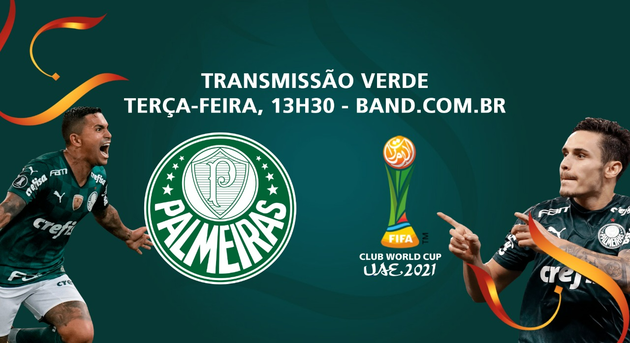 O Palmeiras enfrenta o Al Ahly na próxima terça-feira (8), Ao Vivo na tela da Band, a partir das 13h30, com narração de Ulisses Costa e comentários de Velloso e Edmundo. No Band.com.br, você pode escolher entre o sinal da TV ou a ‘Transmissão Verde’. Acompanhe tudo na página do Mundial de Clubes.