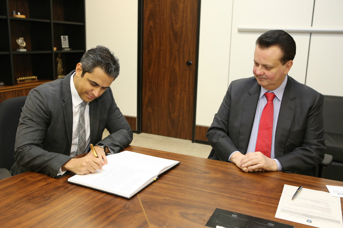 O presidente da Assembleia Legislativa, deputado José Vitti (PSDB), entregou na manhã desta terça-feira, 13, um material com diversas informações da obra da nova sede da Alego para o procurador-geral de Justiça de Goiás, Benedito.