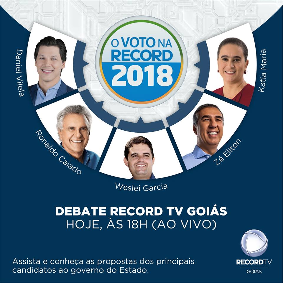 Acontece hoje na Record TV Goiás debate com candidatos ao governo do Estado