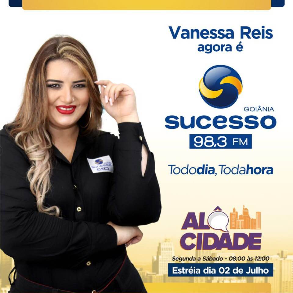 A locutora Vanessa Reis, que já trabalhou nas principais rádios do Tocantins e por quase dois anos na Rádio Terra FM de Goiânia, é a mais nova contratação da Rádio Sucesso FM 98.3. Vanessa Reis.