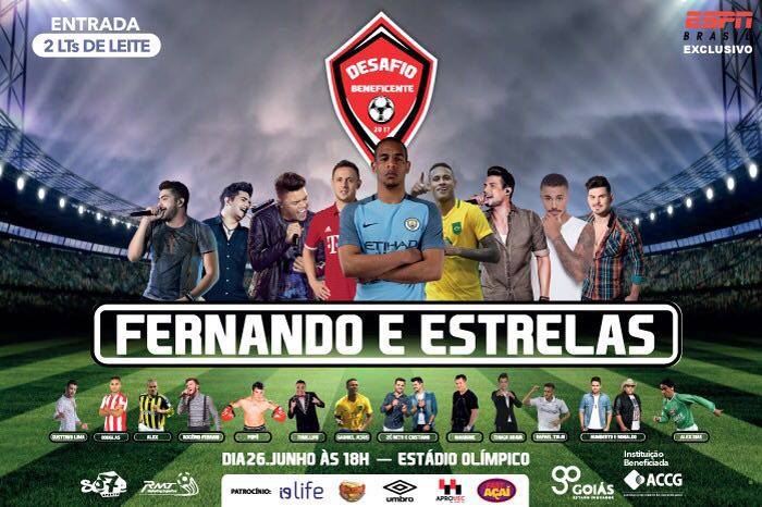 Fernando Reges, volante do Manchester City, promove o Desafio Beneficente, no Estádio Olímpico, em Goiânia. O evento será realizado no dia 26 de junho, segunda-feira, a partir das 18h. Para adquirir o ingresso são necessários.