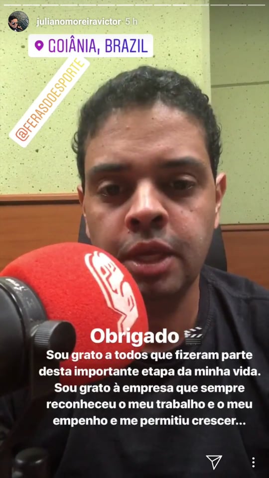 Durou pouco mais de cinco meses a passagem do repórter Juliano Moreira nas “Feras do Esporte”, na Rádio Bandeirantes 820. Segundo Bruno Daniel, coordenador de esportes, ontem (14), na transmissão do primeiro jogo da final do Campeonato.