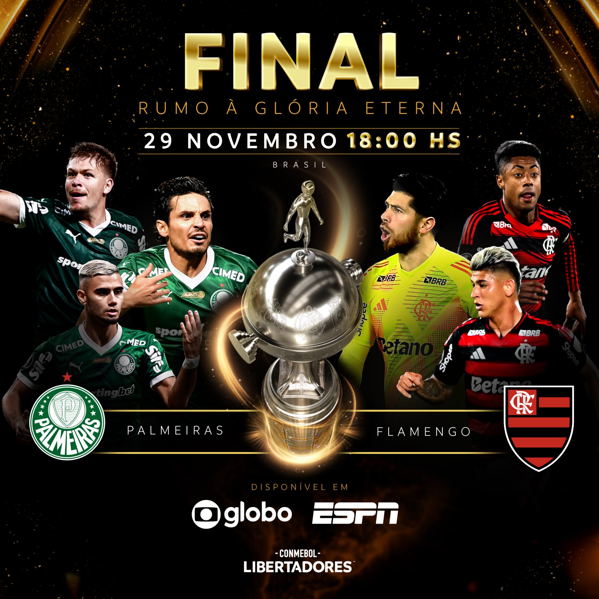 A ESPN fará uma cobertura especial para a grande decisão da CONMEBOL Libertadores de 2025, entre Palmeiras e Flamengo. A partir desta quarta-feira (26), até o dia da decisão, no.